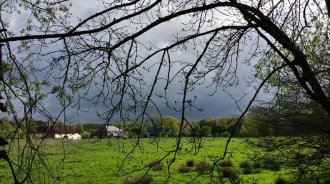 The Grand Western canal was the basis of my route today. The beginning of the day is all tow path, barges, and dog walkers. Later, paths where the canal used to be, and finally lanes into Taunton. It's very windy, at my back, mainly, and there are some heavy showers. Another day of dancing around, trying to get my waterproof trousers on and off. At one point I disturbed a deer, and the birds were very vocal. The countryside is impossibly green, the trees are now almost fully in leaf.