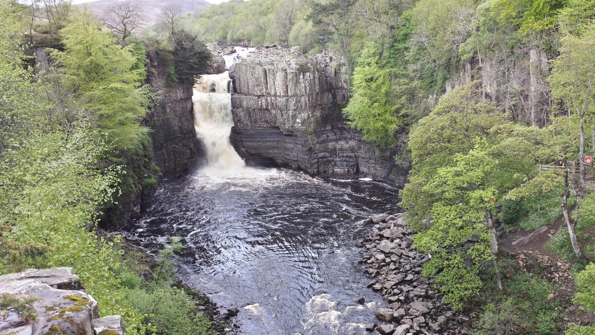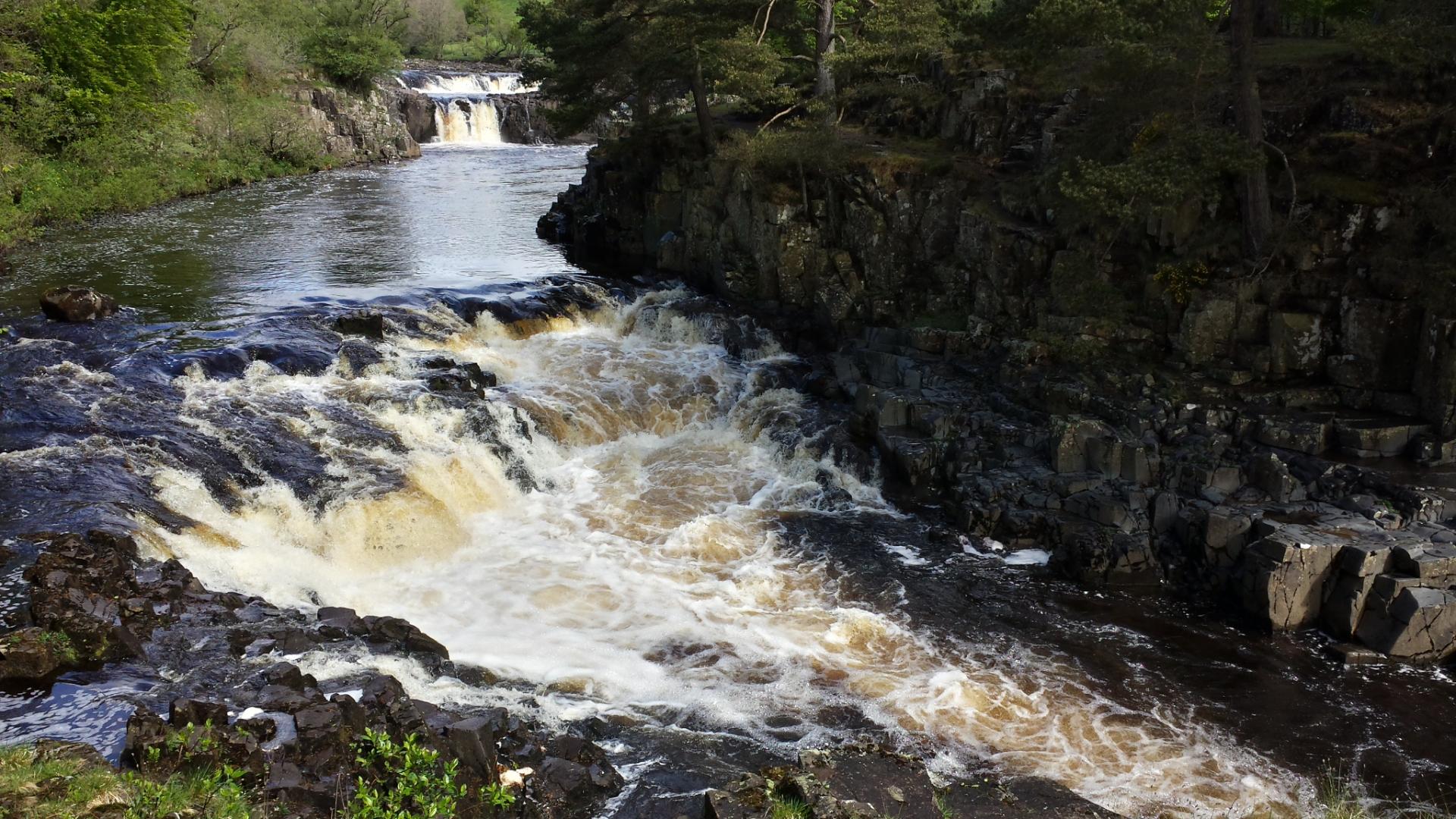 Low Force and High Force are two waterfalls which are very easy on the eye. As the river is full, the water is cascading down through the rocks with great energy. After another hour I reach Cauldron Snout, an altogether different scale of waterfall. The Tees pours down from a great height and is truly spectacular: