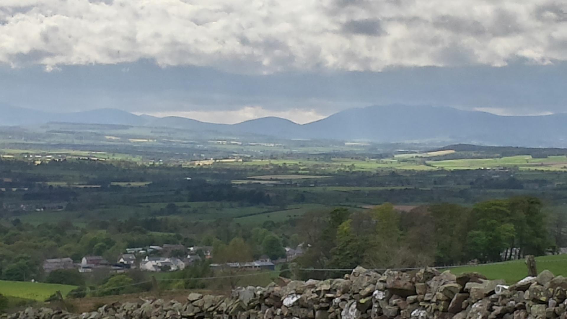 What is it about barbed wire? I don't get it. At one point there is a field of sheep to the left, fenced with a double strand of barbed wire on top. Trees and the river are on my right, leaving a quite narrow path. It would be all too easy to catch clothing, back pack or skin on the wire, which is also at a child's eye level. Surely ordinary wire would be equally effective? Enough moaning, as I meet two gentlemen out for a walk on the hills, looking for spring gentian. One of them, Brian Carter, asks about my walk and kindly makes a donation to the fund. What a nice man. I, of course, forget to take a photo.