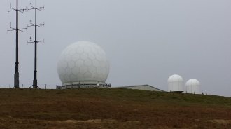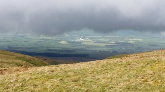 The path leads ever upwards, past Knock Fell, Great Dun Fell with ita ghostly radar globe, Little Dun Fell and finally Cross Fell at 2930 feet. The cloud occasionally parts and gives me tantalising glimpses of the views I'm mostly unable to see. On a clear day it's possible to see the sea and, to the north, the hills of Galloway in Scotland. The weather plays games, and in the space of ten minutes there is weak sun, rain, and, at the highest point, sleety snow. Mercifully, the Helm Wind, notorious at Cross Fell, is absent.
