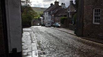 Breakfast. I'm finding the full English a bit much so the marvellous hostel sends me on my way full of the vegetarian option. The weather is damp, not raining, and the tops of the hills are lost in cloud.