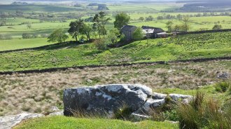 The walk along the wall lasts all morning. It's truly unique and amazing. The ground goes up and down like a roller coaster. I'm taking it all in when suddenly its all like an episode of Casualty. Two people within a half a mile of each other have fallen and hurt themselves badly. Ambulances are summoned and I can do nothing to help so I walk on. (Another sad event. I read in the local paper at breakfast that on Friday - the day after I walked past - a father out with his family drowned while swimming at Low Force waterfall.)