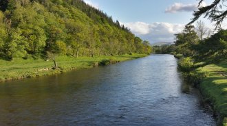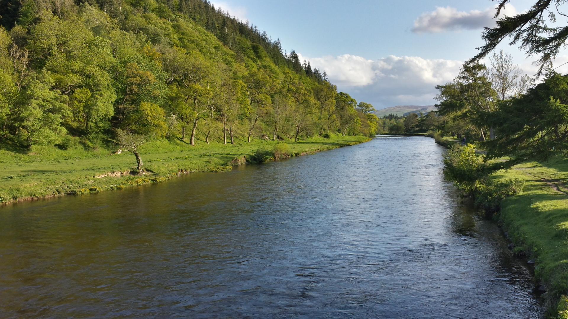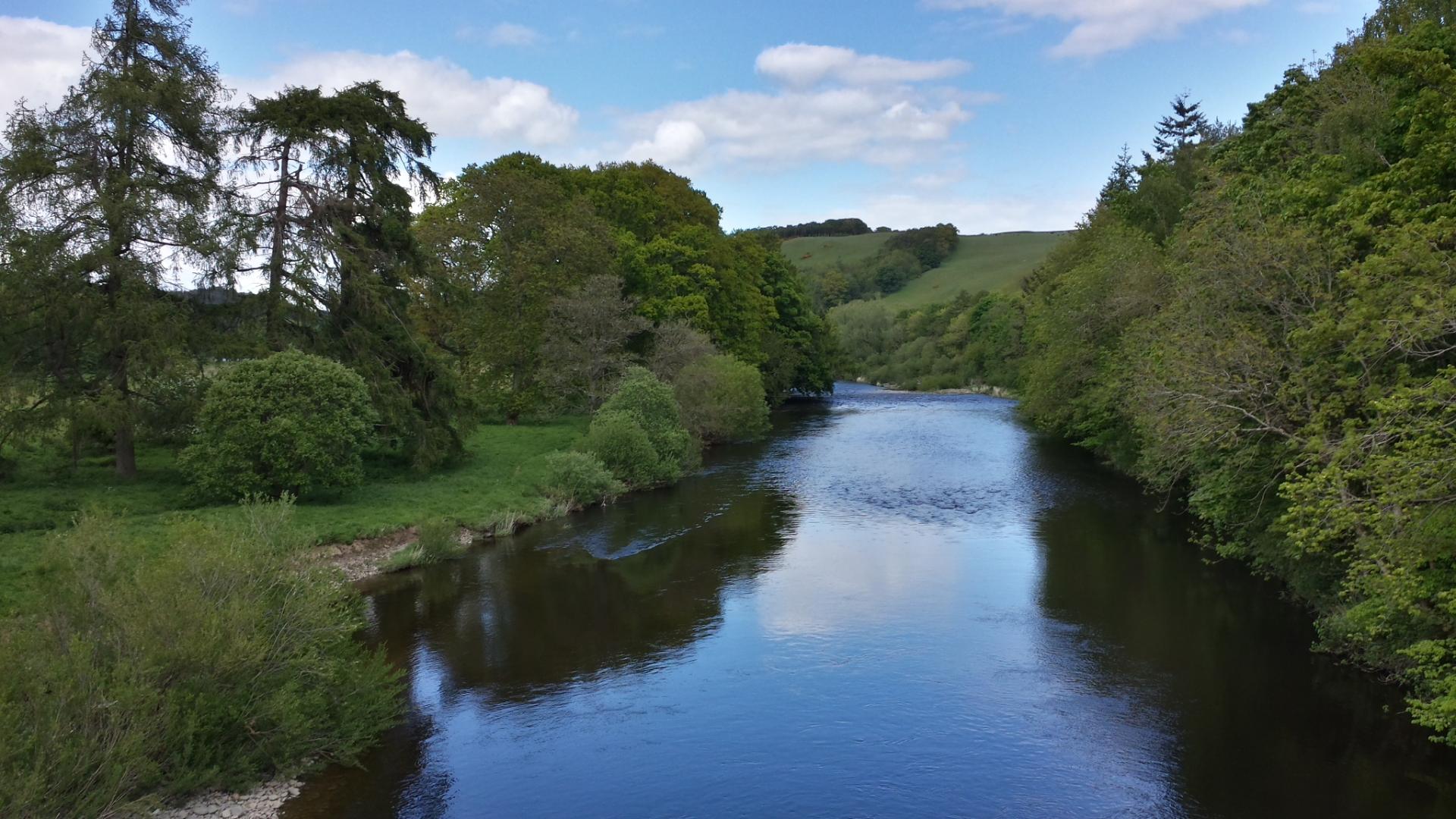 The scene: a cycle route following the valley of the River Tweed. The following dialogue can be heard:
