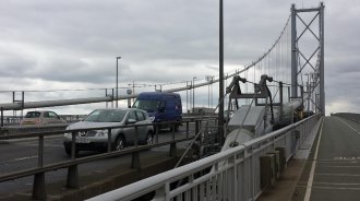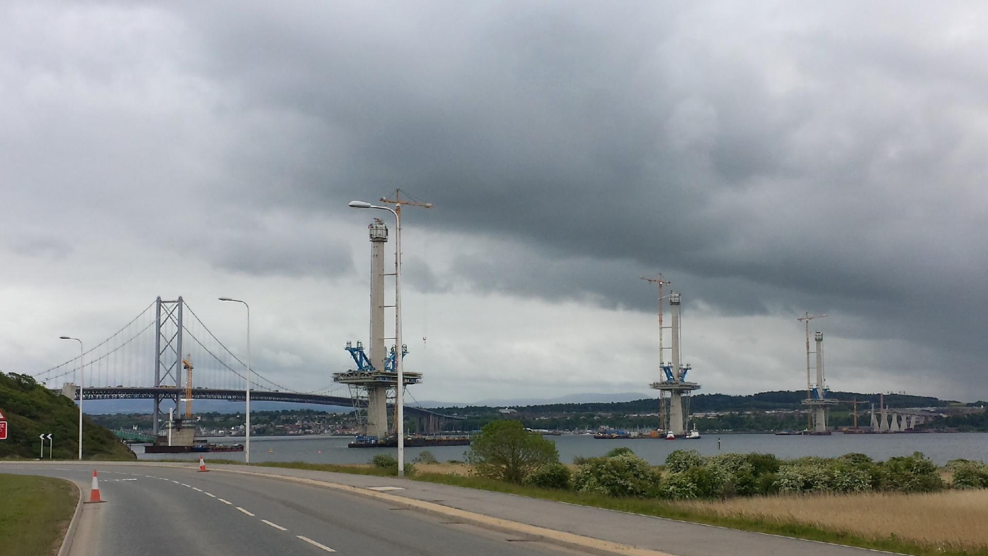 The next few miles to the bridge are a strange mix of villages, industrial areas, motorways, building sites, and road works. I'm quite excited about the walk over the road bridge. The Genesis song Firth of Fifth comes to mind:
