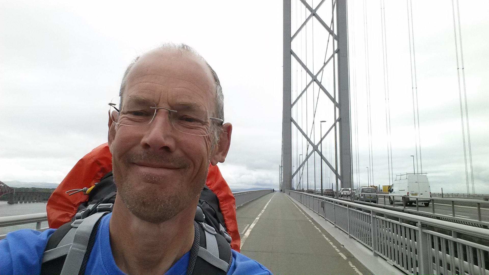 There's a piece of grit in my left boot. It's annoying, but not enough to stop and sort out. Airbusses periodically cross the sky in front of me, having been catapulted off the runway of nearby Edinburgh airport. Traffic thunders past on a road leading towards the Forth road bridge, also my destination. The grey sky threatens rain, which doesn't actually fall. The day started very differently...