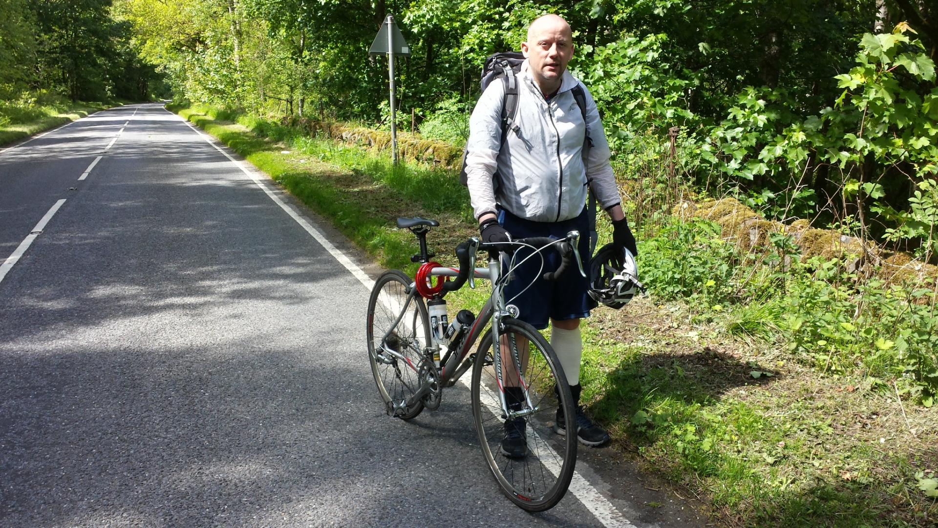 At one point I met a cyclist walking towards me, pushing his bike. John is cycling 500 miles from Wick to Dublin for charity. On his first day he came off, injuring his leg, and has been reduced to pushing the bike up hills, and riding down them. A lesser mortal would have given up, but John is made of sterner stuff. He has a date to watch the Ireland v Scotland euro qualifying match next Saturday in Dublin and is determined to keep it.