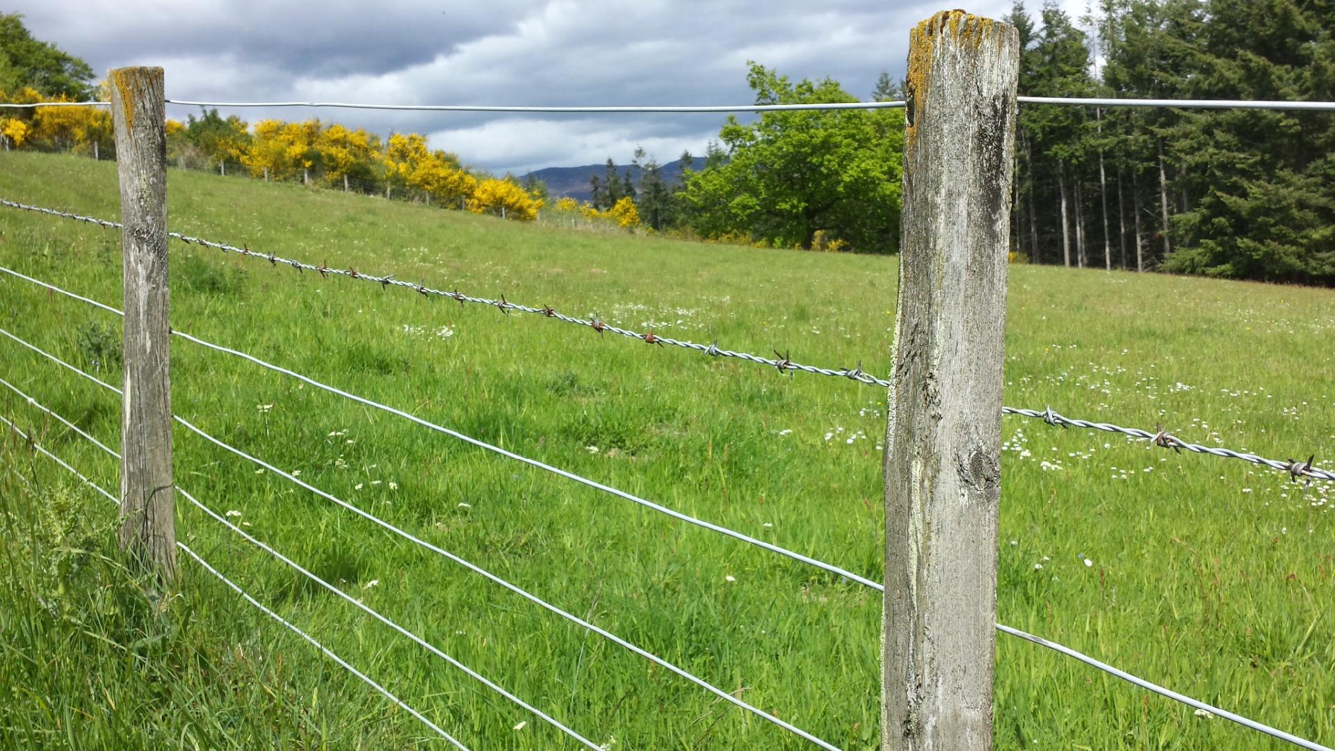 A new take on the barbed wire front today - it's the second wire down, not the top one. What IS the point? Before I can get too worked up, I'm distracted by a view of distant mountains with snow on them. You can just about see it in the photo below.