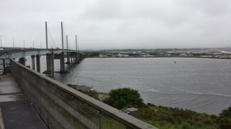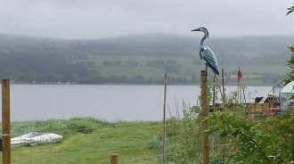 Near our destination of Evanton Fiona cycled past and stopped to talk. An end to ender on two wheels, she had two more days to go. Fiona said she stopped so often during the day to talk to people that she often reached her overnight stop around nine in the evening. At this point we have a good view of the Cromarty Firth and can see distant oil rigs waiting to be deployed or dismantled.