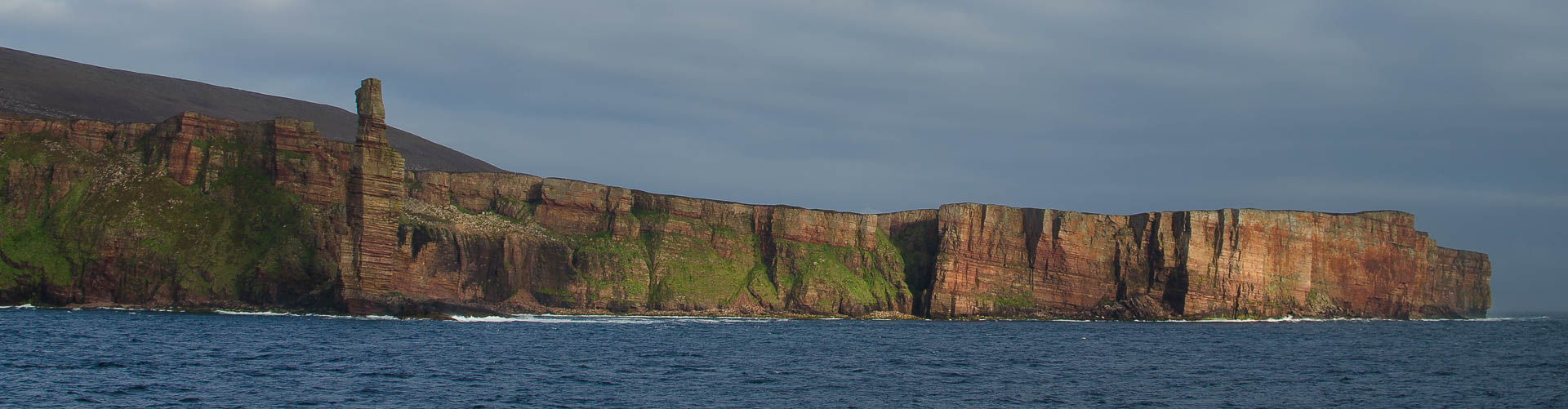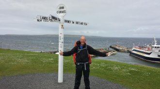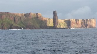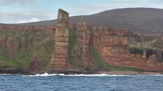 A bus journey of an hour took me to Thurso, where I realised I could get the 7.00 pm ferry to Stromness on the Orkney Islands. I have always wanted to see the Old Man of Hoy - a giant rock stack. The ferry went very close to it and the view made my day complete. So here I am at 11.00 pm finishing this entry at the Ferry Inn in Stromness. It hasn't sunk in yet... but I did it!