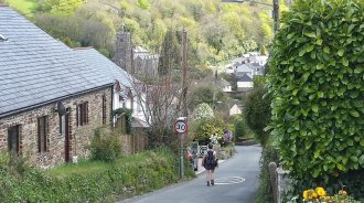 After negotiating some busy roads to exit Bodmin we end up on our usual route of pretty lanes. In one village a man is sweeping his drive, and asks us our destination.