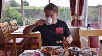 I'm lying on a double bed in a Travel Lodge in the motorway services on the English side of the Severn Road Bridge. Sherpa Jim Son is lying next to me. It puts me in mind of Morecambe and Wise. Should I get my pipe out? Or a stick of celery? Will SJS show me the first draft of the latest play wot he wrote?