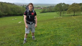 The last few miles were along the bank of the Severn Estuary in glorious evening sunshine. SJS is feeling the weight of my pack, but refuses to hand it back. Thanks Jim. Nice to walk with a light pack today :) Pub first, then back to the room to compare short, fat, hairy legs.