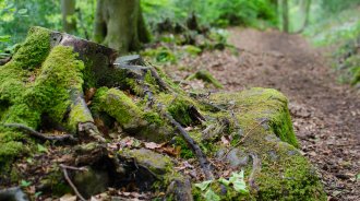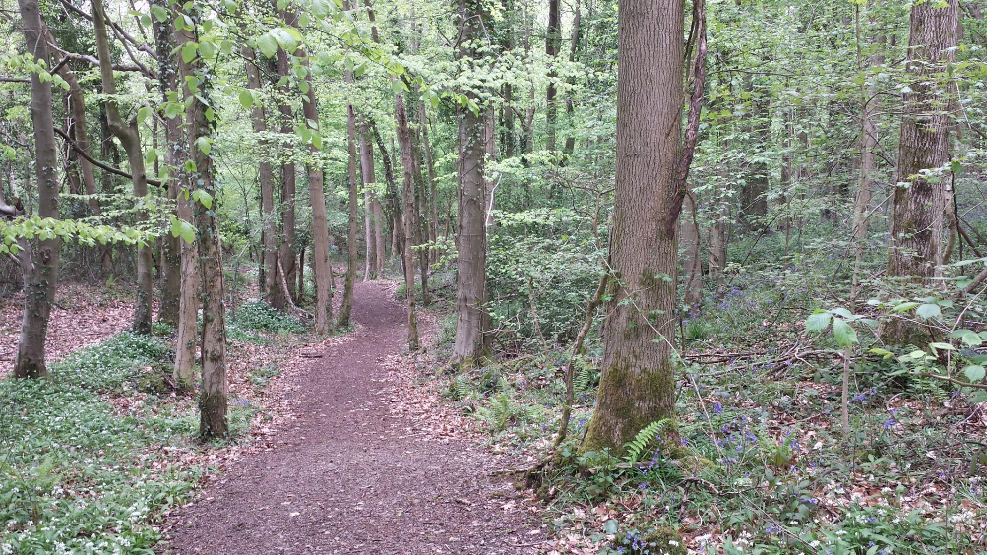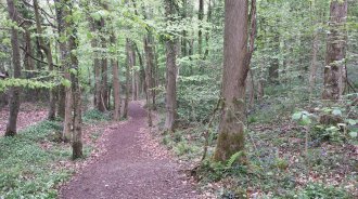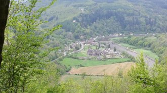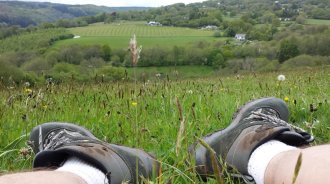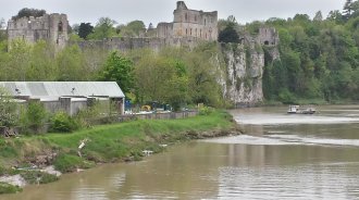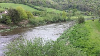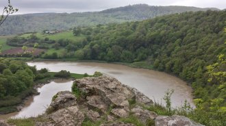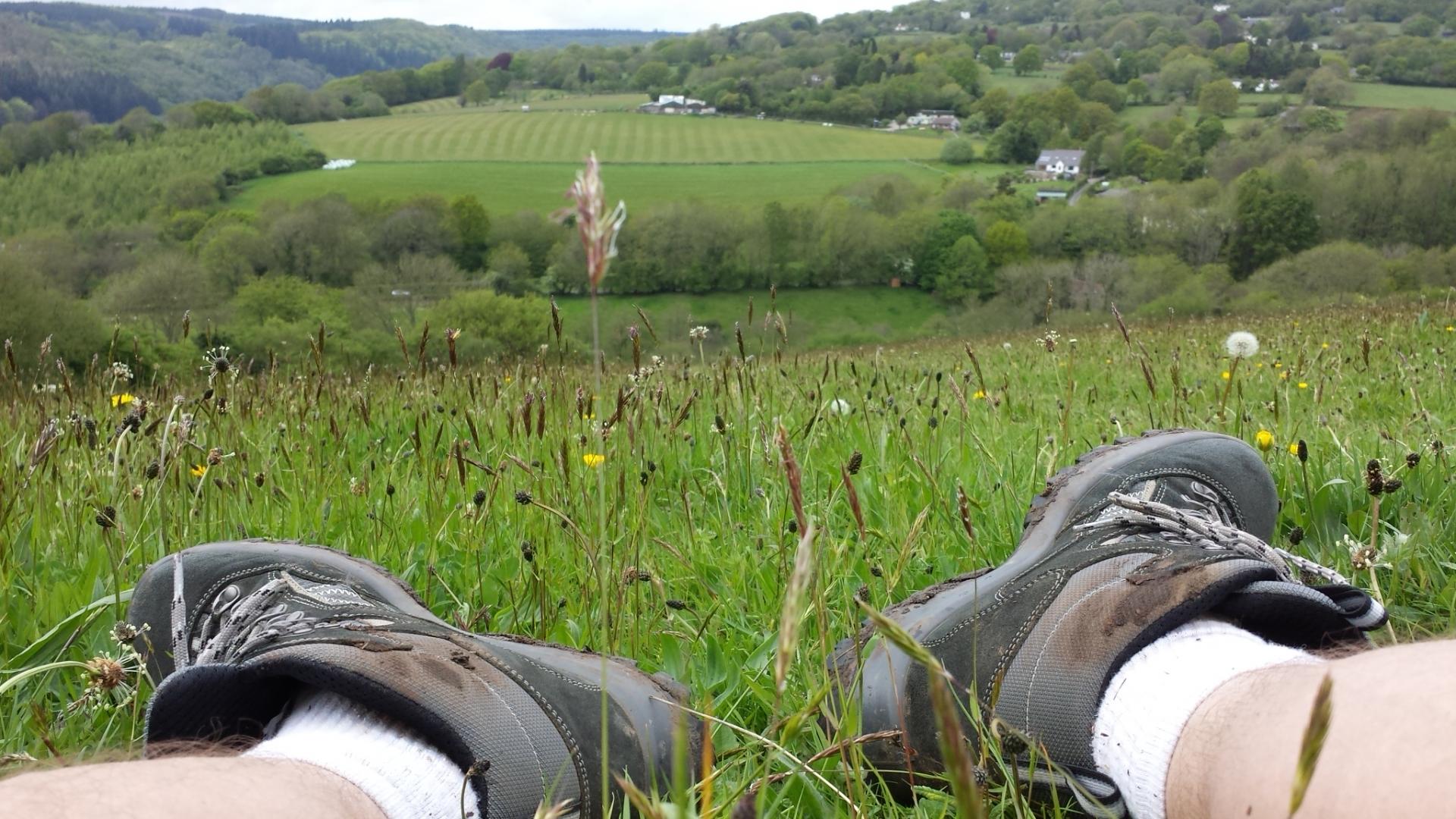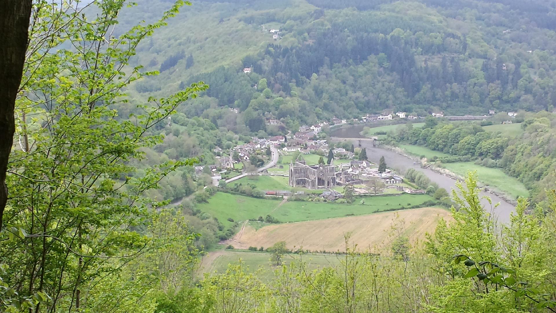 and the Wye Valley Walk. How amazing must it be if over 1200 years after your turn on life's merry - go - round your name is still being mentioned daily by many people. The scenery is stunning. Most of the time I'm high above the river, in the wooded hillsides. Occasionally, the trees part and at the "Devil's Pulpit" there is a view of Tintern Abbey, far below. A shame SJS isn't here to see it.