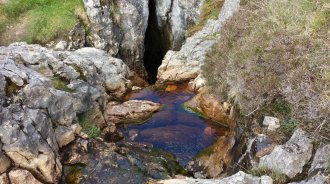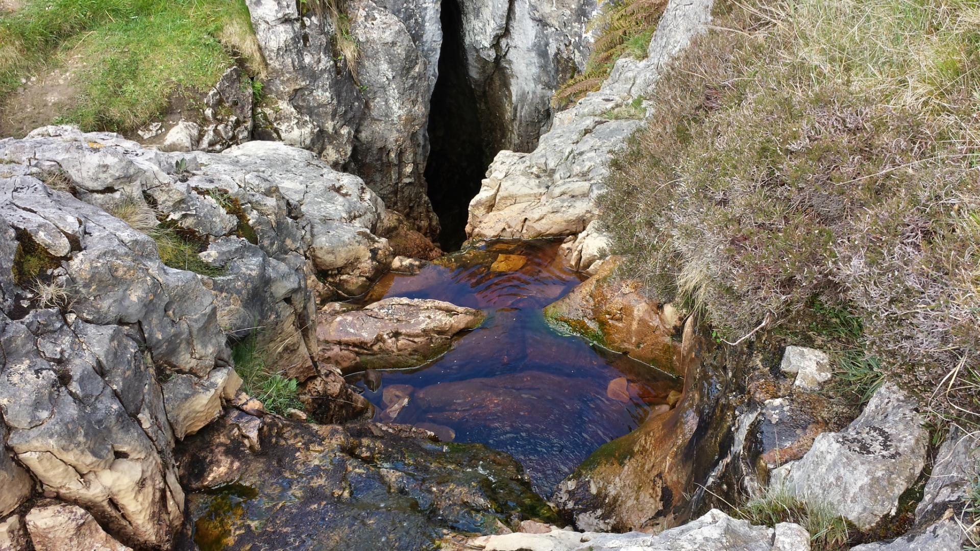 Twice in the morning I see lively streams disappear into massive caverns leading deep underground. Potholing? Perhaps not for me...