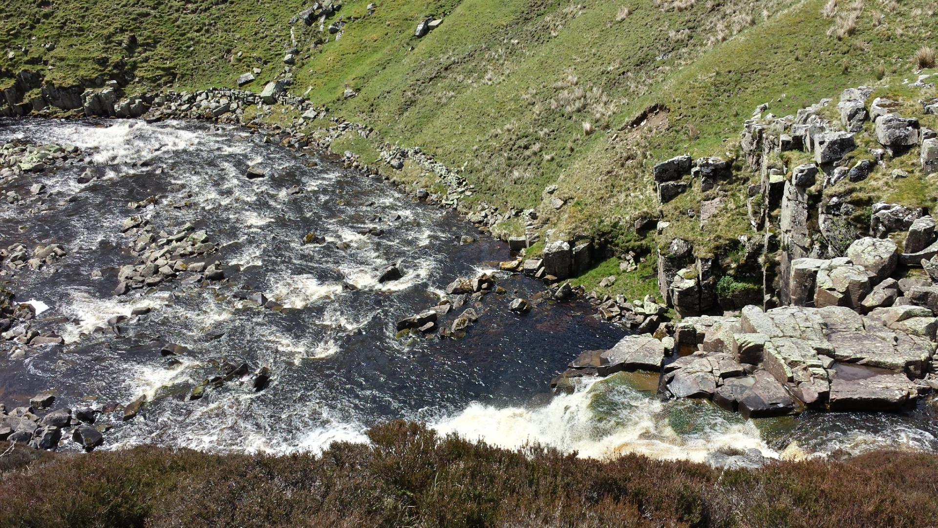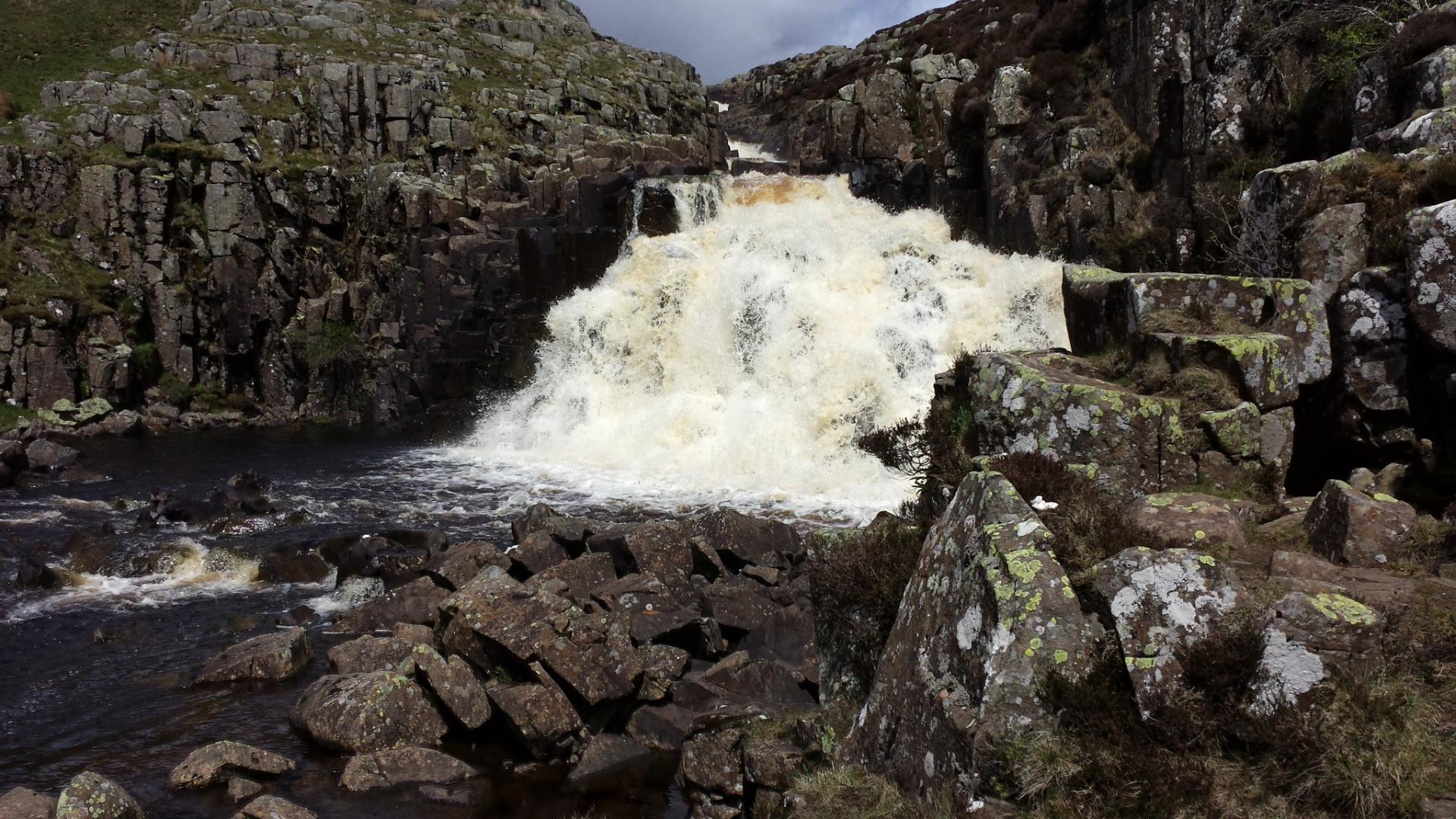 Low Force and High Force are two waterfalls which are very easy on the eye. As the river is full, the water is cascading down through the rocks with great energy. After another hour I reach Cauldron Snout, an altogether different scale of waterfall. The Tees pours down from a great height and is truly spectacular: