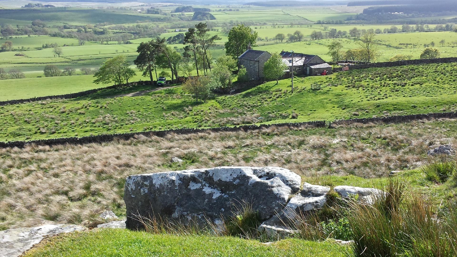 The walk along the wall lasts all morning. It's truly unique and amazing. The ground goes up and down like a roller coaster. I'm taking it all in when suddenly its all like an episode of Casualty. Two people within a half a mile of each other have fallen and hurt themselves badly. Ambulances are summoned and I can do nothing to help so I walk on. (Another sad event. I read in the local paper at breakfast that on Friday - the day after I walked past - a father out with his family drowned while swimming at Low Force waterfall.)