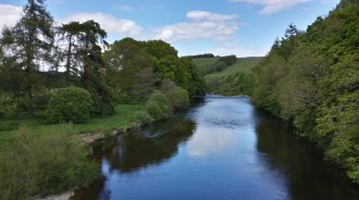 The scene: a cycle route following the valley of the River Tweed. The following dialogue can be heard: