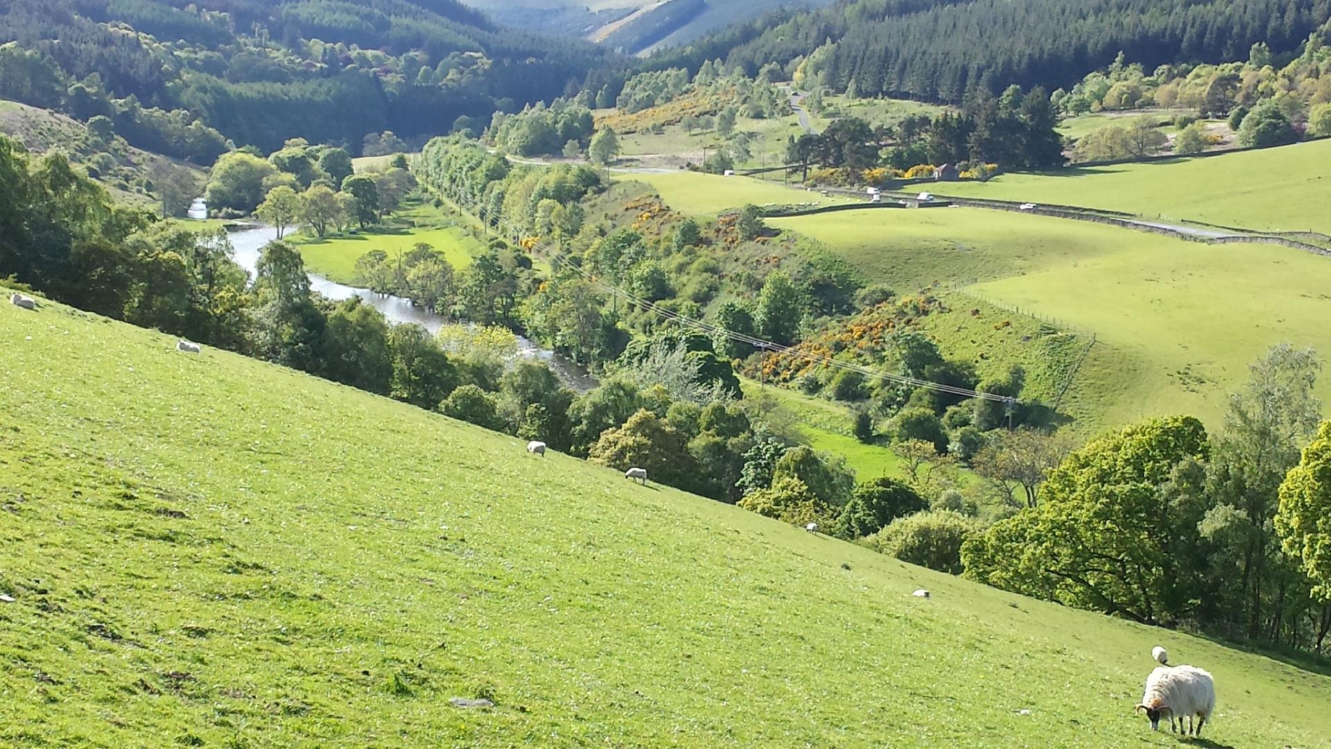 I skirt around the south of the Eildon Hills and don't actually go to Melrose. Farm tracks take me to the cycle route and I plod on to Innerleithen. As I round a bend in the road, I see houses on the opposite bank of the river. I've made it! Innerleithen. I finally take a look at my phone and discover that I am looking at the village of Walkerburn. Innerleithen lies a couple of miles further on. Oh well. Another few paces and I see a tiny chick in the road. A car stops as I pick it up and the lady driver tells me it's a pheasant or partridge. I put it somewhere safe where there's a chance of the parents finding it.