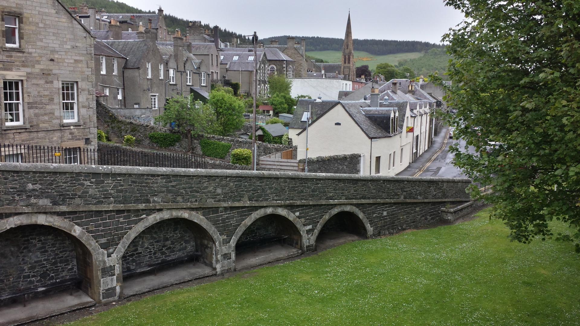 Peebles is the sort of town you would like to spend some time in. I reached it after walking along the Tweed for five or six miles. A high street with hardly a big name in it, lots of friendly people to chat to, and lovely old buildings. I stopped for coffee and had a quick look around.