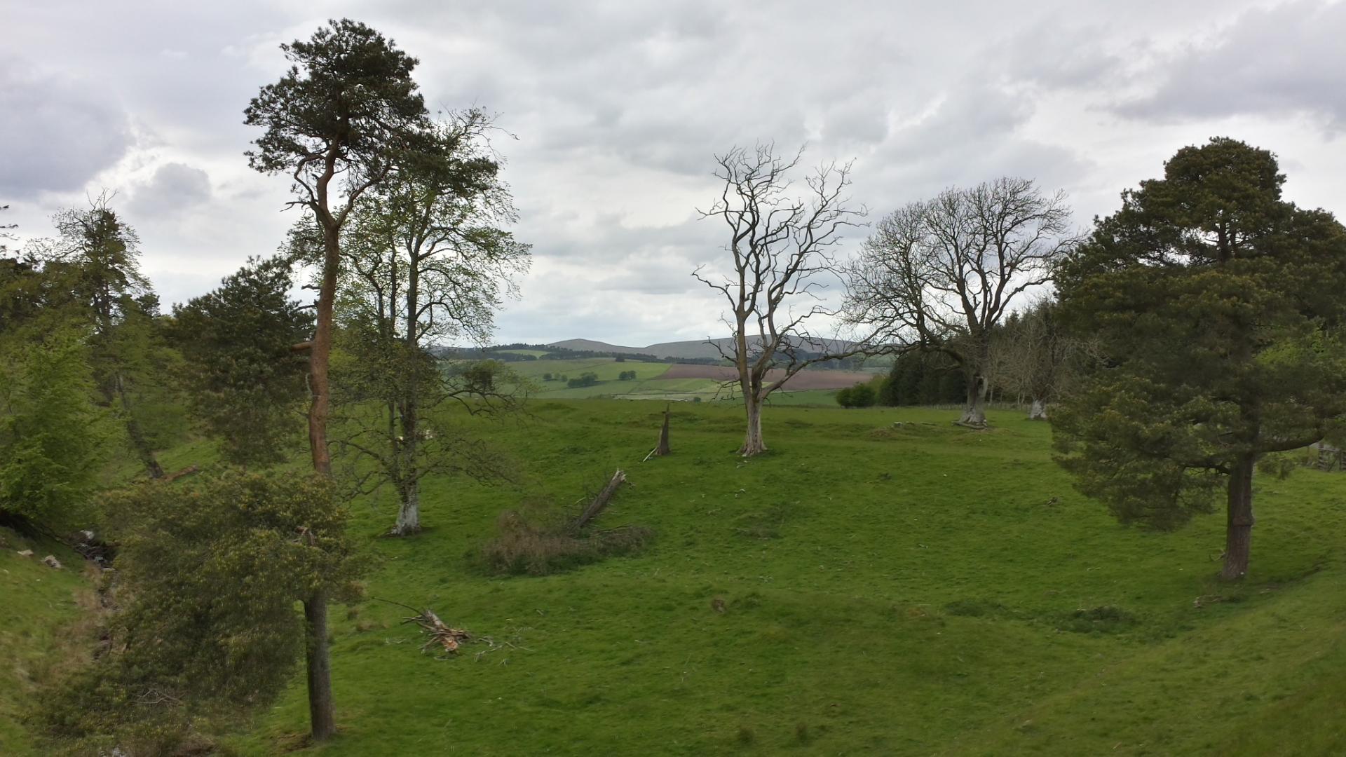 The rest of the day was uneventful, apart from a caterpillar on the road... Disused railway lines, paths, farm tracks and lanes made a slightly convoluted route to Carlops, and the Allan Ramsey Hotel