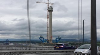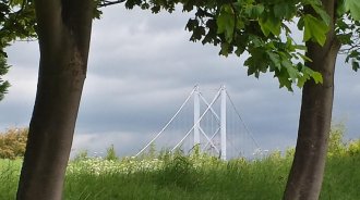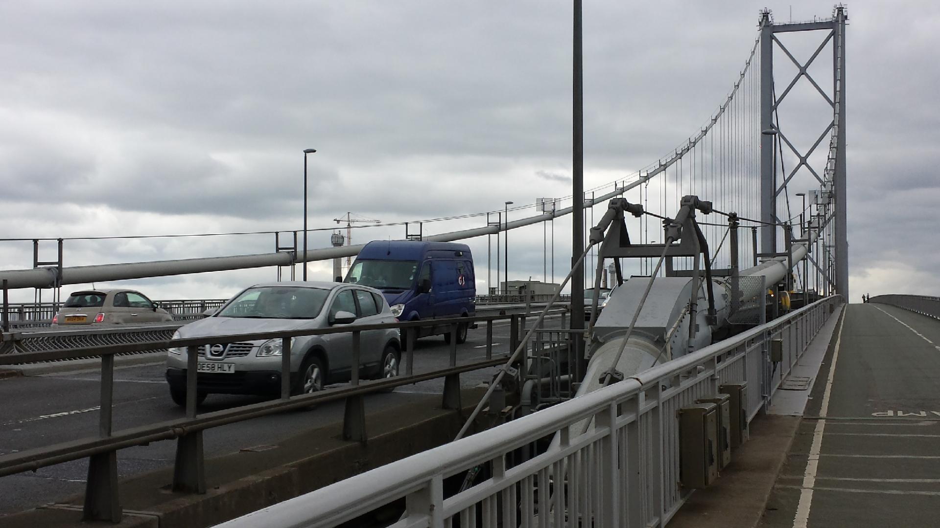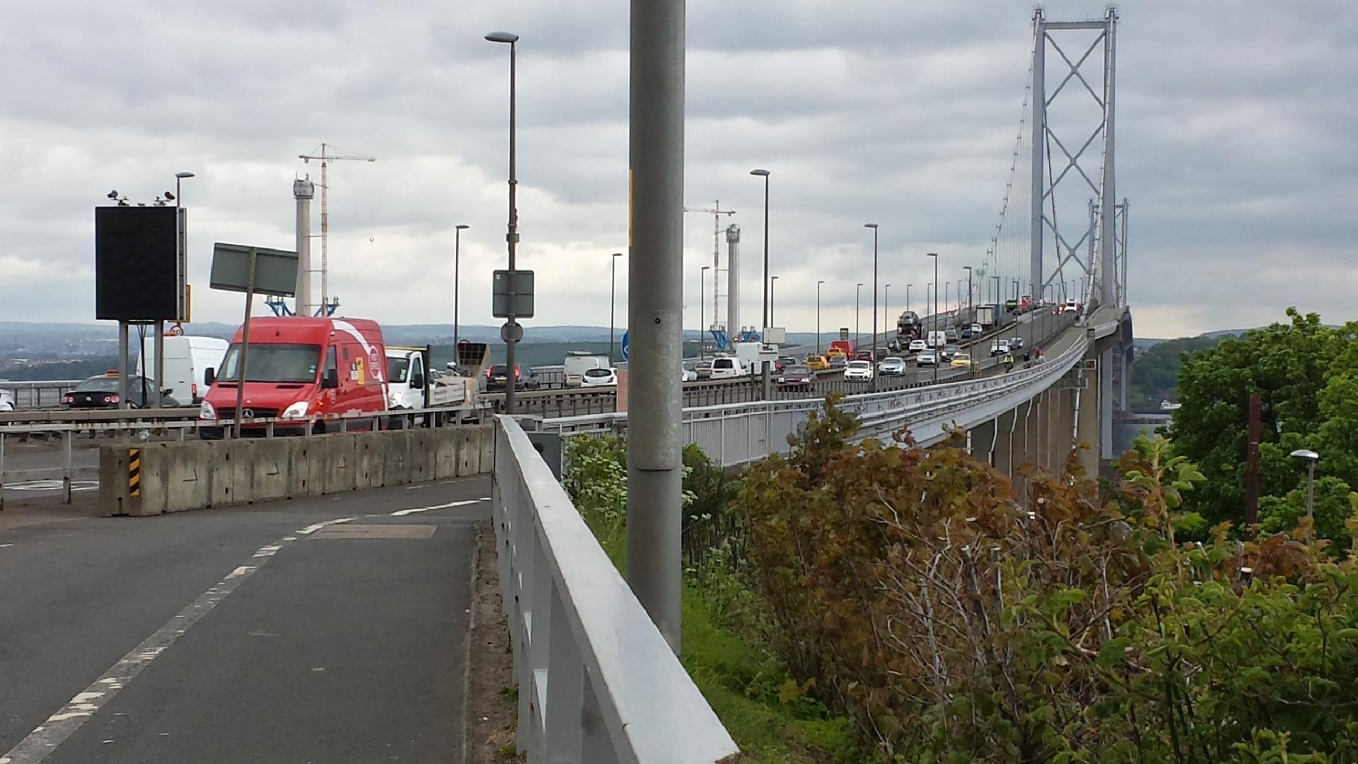 The next few miles to the bridge are a strange mix of villages, industrial areas, motorways, building sites, and road works. I'm quite excited about the walk over the road bridge. The Genesis song Firth of Fifth comes to mind: