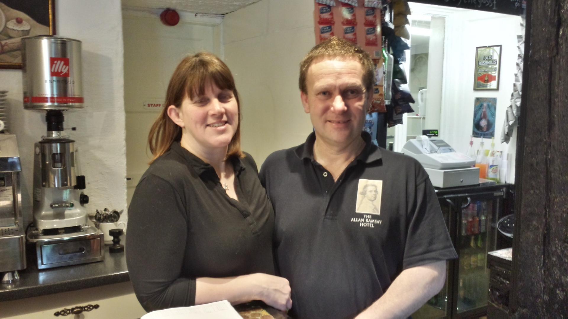 At breakfast at the Alan Ramsay Hotel - named after the Scottish poet who was once as famous as Burns - Rosie and Kenny look after me very well. They send me on my way with lots of treats to eat as I walk. The Pentland Hills lie between Carlops and Edinburgh and the climb up and over is pleasant due to the warm weather and lack of wind.