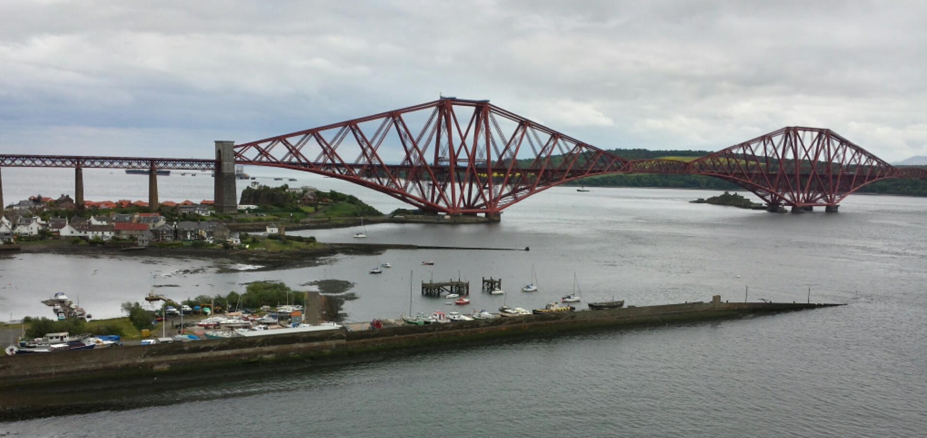 There's a piece of grit in my left boot. It's annoying, but not enough to stop and sort out. Airbusses periodically cross the sky in front of me, having been catapulted off the runway of nearby Edinburgh airport. Traffic thunders past on a road leading towards the Forth road bridge, also my destination. The grey sky threatens rain, which doesn't actually fall. The day started very differently...