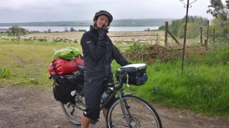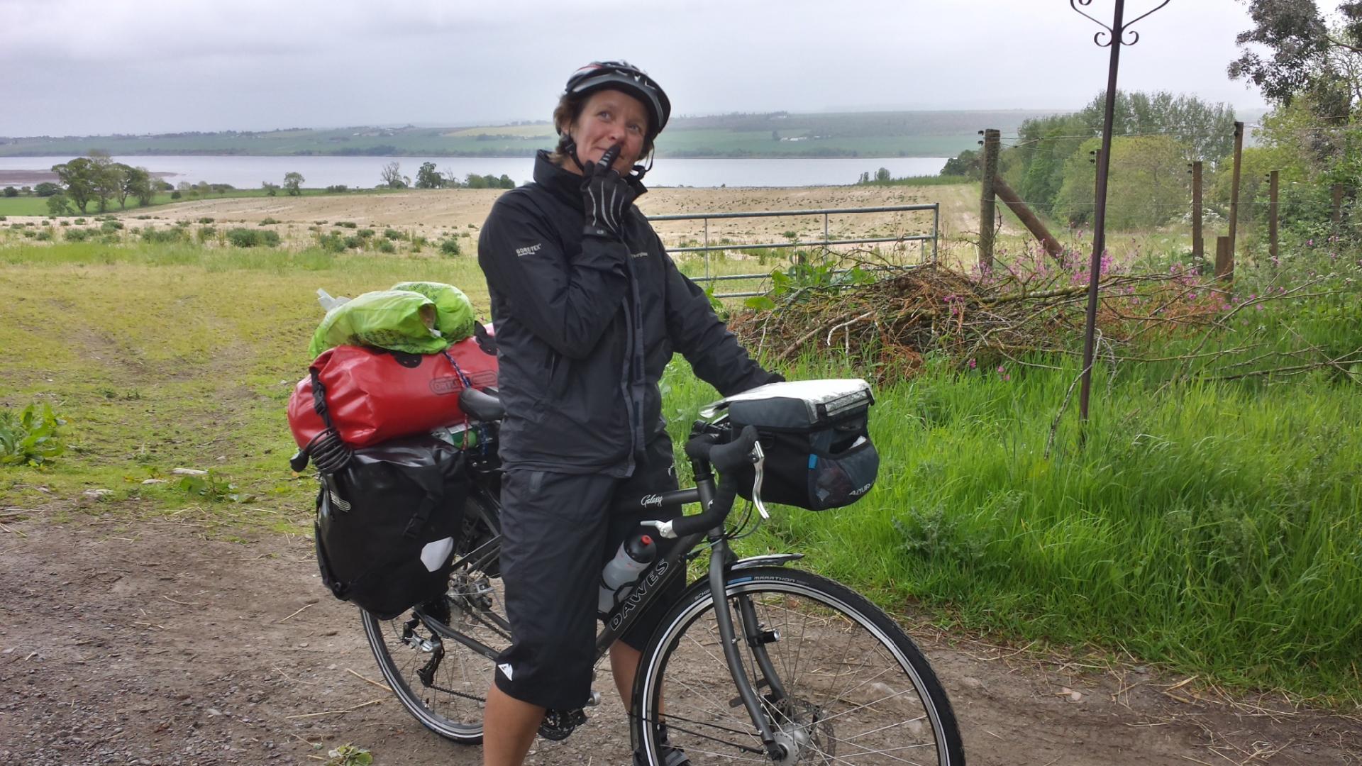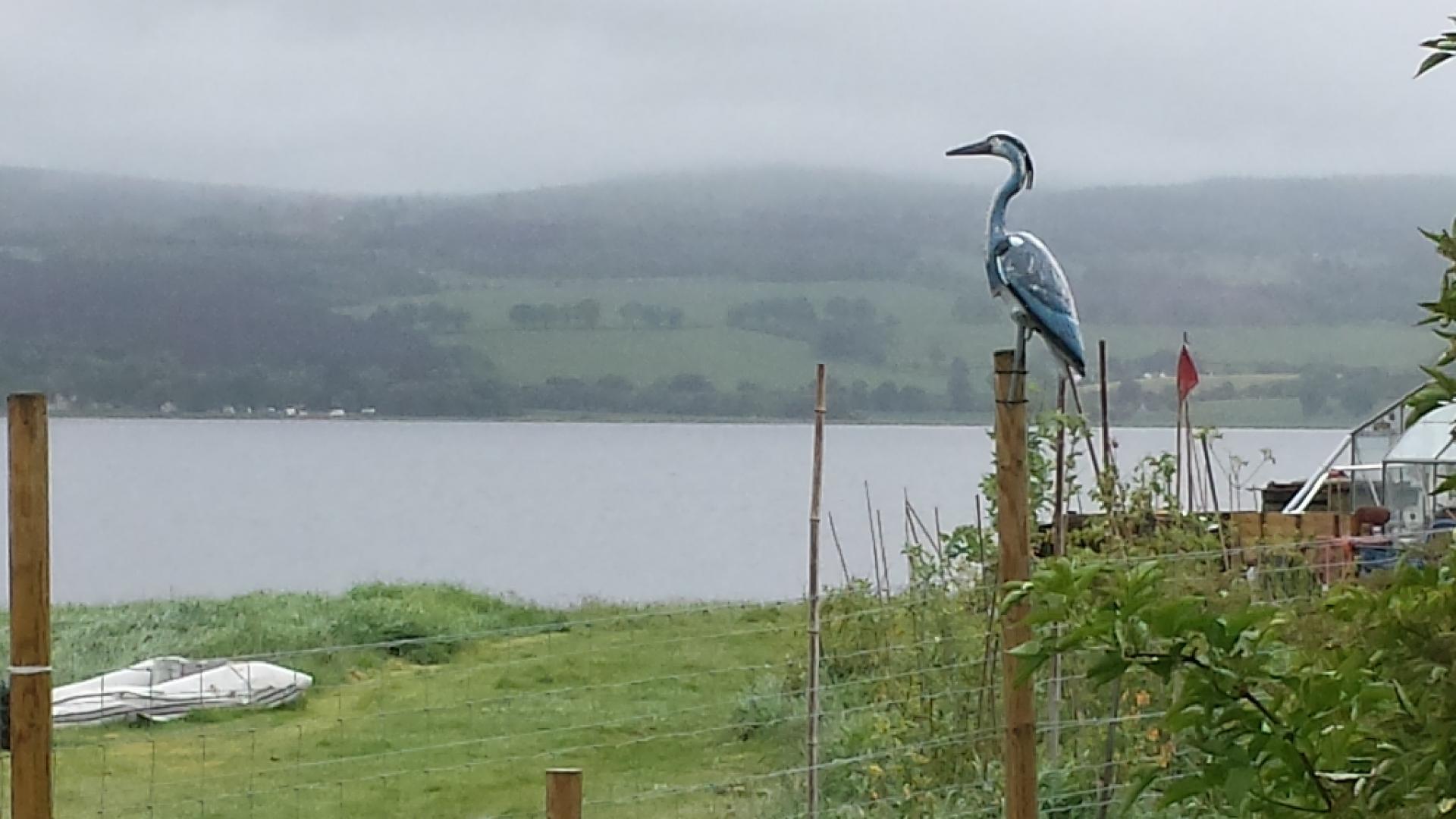 Near our destination of Evanton Fiona cycled past and stopped to talk. An end to ender on two wheels, she had two more days to go. Fiona said she stopped so often during the day to talk to people that she often reached her overnight stop around nine in the evening. At this point we have a good view of the Cromarty Firth and can see distant oil rigs waiting to be deployed or dismantled.