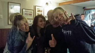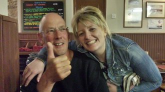 Terri's thumbs are a blur on the keypad of her phone. She's donated to the cause! Then her friends Kimberley and Barry follow suit. They seem impressed and make Jim and me feel very good.