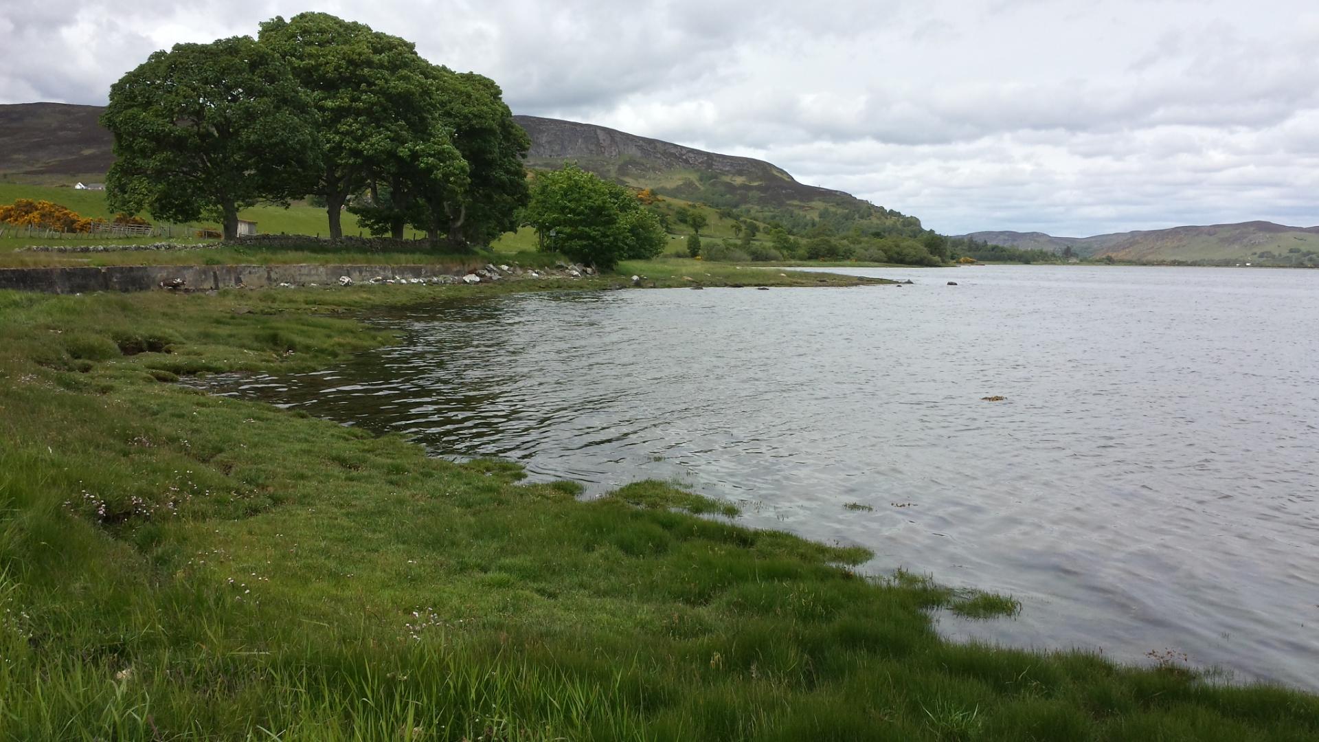 The route through Dornoch to Loch Fleet is on quiet lanes. For a while I'm walking next to the loch, and am lucky to spot a seal in the water close to the shore. After Loch Fleet I am forced to follow the A9 to Golspie, not that pleasant an experience, so while marching along I compose a country and western ballad: