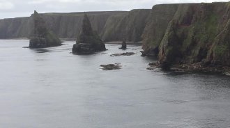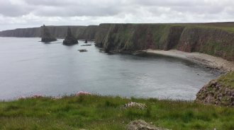 Duncansby Head was amazing. Towering cliffs, the lighthouse, massive rock stacks, and a multitude of seabirds including a puffin or two made me glad I'd gone. I walked back and wasn't so lucky with my opposable digit. Which was lucky, as I met David walking towards me. David has completed the end to end in sections. When he crossed the fords at Glen Tilt (in the Cairngorms) there had been a lot of rain, and he had to wade through water which came up to the top of his thighs. There were indications on the banks were that the water had been even higher. This was yet another reminder of how lucky I've been on this walk. Someone up there has been looking after me... I was sad to say goodbye but we shook hands and went in opposite directions. But not before David told me off for eating his ice cream :)