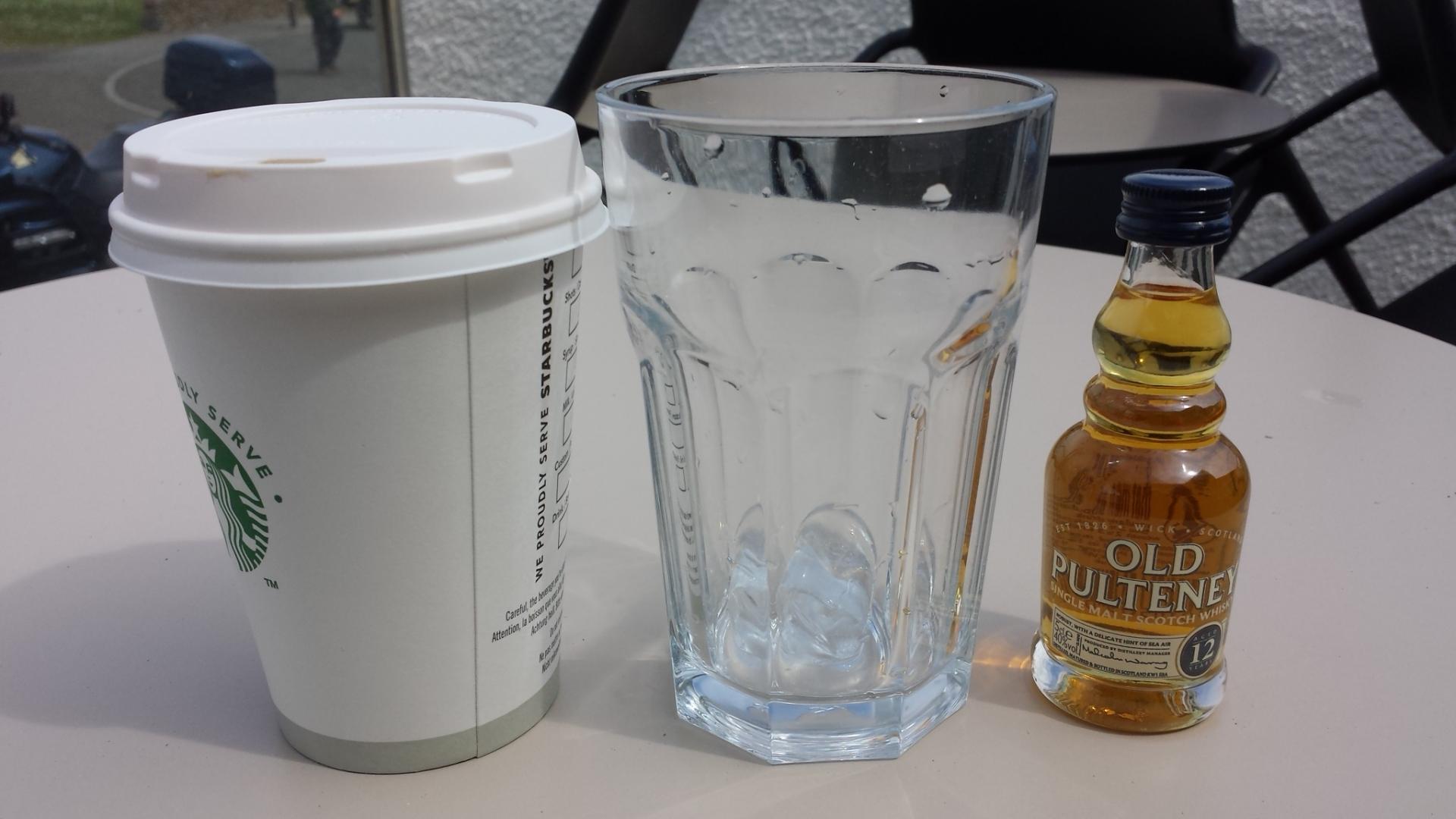 No. The end is slightly anticlimactic. There are a couple of other walkers and lots of cyclists. And lots of "civilians" who are in cars and camper vans. There is a slight scrum around the famous sign and nobody notices me. No brass band. No popping champagne corks. No fuss... just how I wanted it. I did get someone to take my photo, of course. Then I went into the cafe and signed the register (the iconic hotel is now a leisure complex). I ordered a coffee and drank a bottle of whisky - photo below. Fifty five days after thumbing a lift to Lands End with Tina I've proved that there's hope for old gits everywhere :)